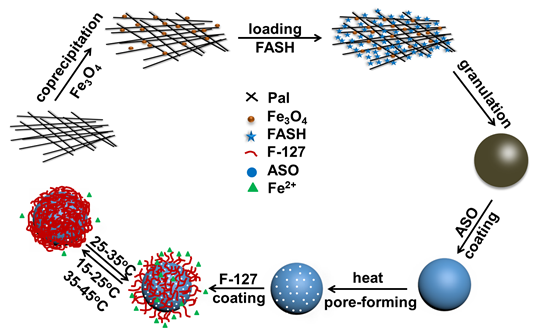 Pal with a porous micro/nano networks structure could bind a great many of Fe2+ through electrostatic attraction.