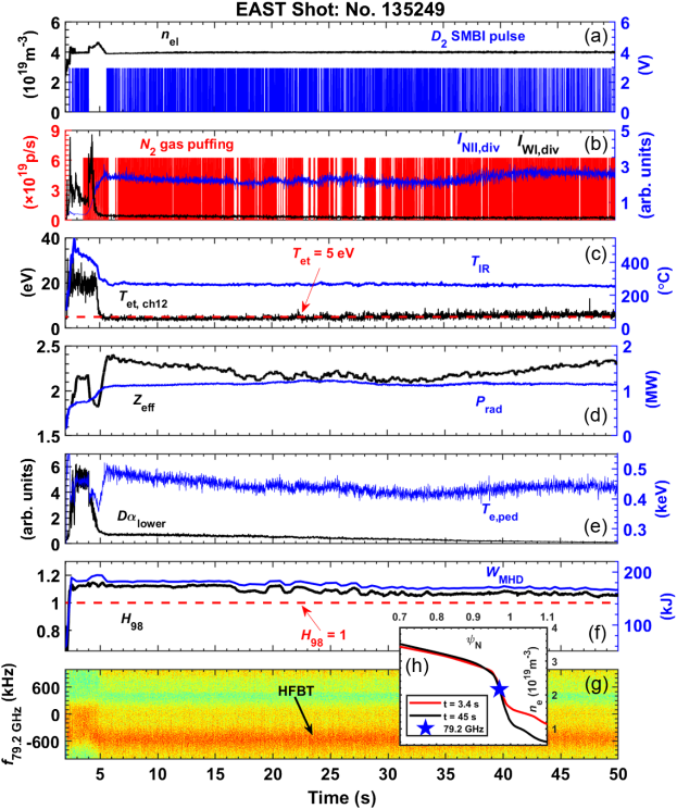 Achievement of high-performance long-pulse operation compatible with ELM-free state and divertor detachment via light impurity injection. (Image by DING Genfan)